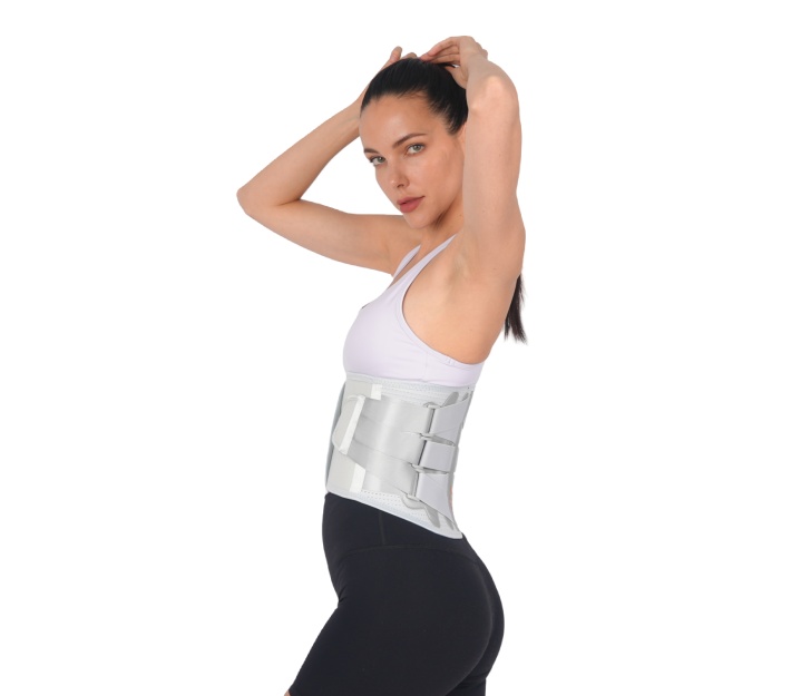 Position the Brace: Place the brace around your waist, ensuring that the webbing and support plate are aligned correctly to provide the necessary support and heat therapy.